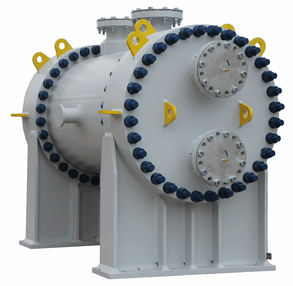 Ideal para refrigeración, bombas de calor y ciclos ORC, evapora medios como el amoníaco utilizando una corriente caliente en flujo de a contracorriente. El colector integrado garantiza una separación eficaz de las fases, al tiempo que minimiza el tamaño de la carcasa, el grosor de las paredes y el volumen de fluido, lo que se traduce en una reducción de los costes operativos.