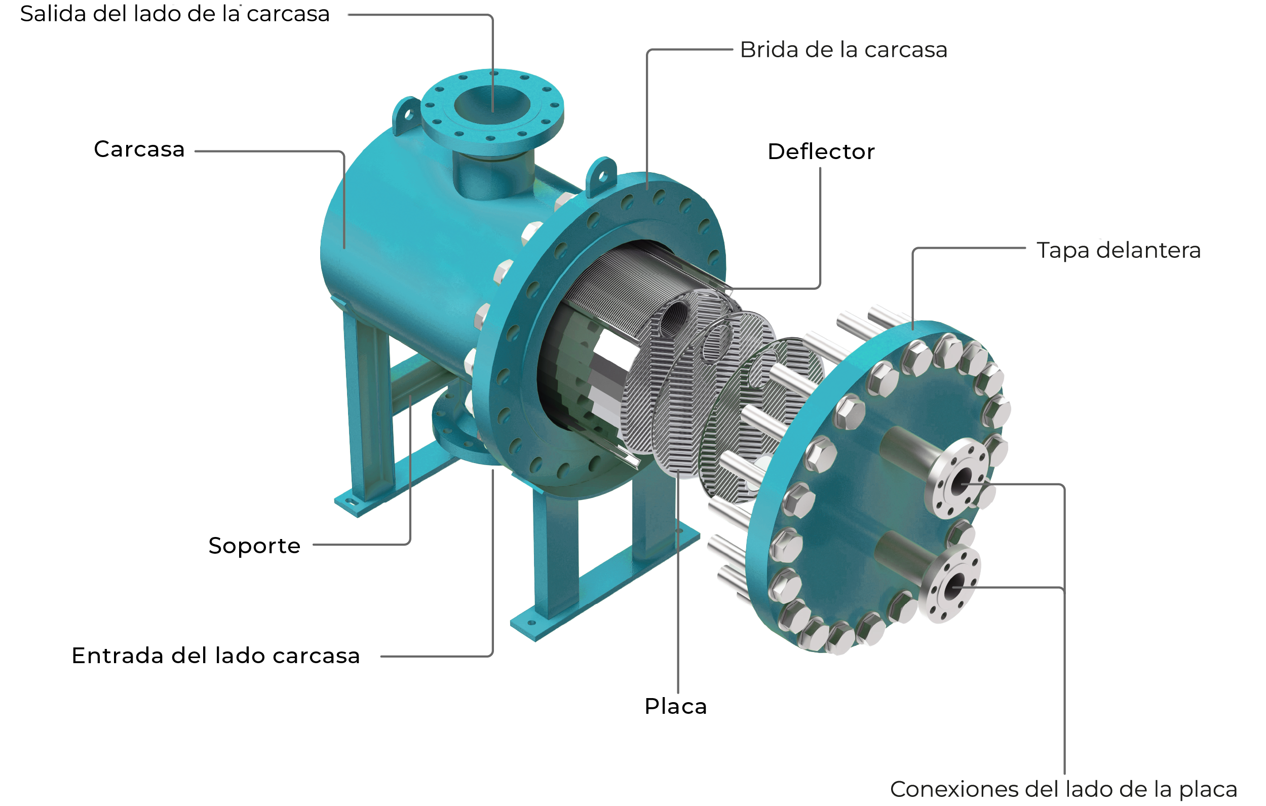 Intercambiadores de calor de placas y carcasa Type O proporciona una mayor flexibilidad al permitir extraer el paquete de placas de la carcasa para su inspección o limpieza mecánica. Esto es posible gracias a su diseño de carcasa embridada y tachonada. El paquete de placas permite desmontarlo y volverlo a montar rápidamente, lo que minimiza el tiempo de inactividad de proceso.
